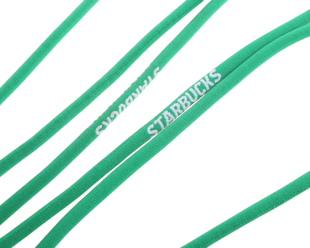 Minimalistisch & Modern Diese Technik erzeugt einen eleganten, sportlichen Look, der bei Technologieunternehmen, Outdoor-Marken und Schulen beliebt ist. Das runde Profil (typischerweise 5 mm oder 8 mm) ist den ganzen Tag über angenehm zu tragen und verdreht sich nicht wie flache Bänder.