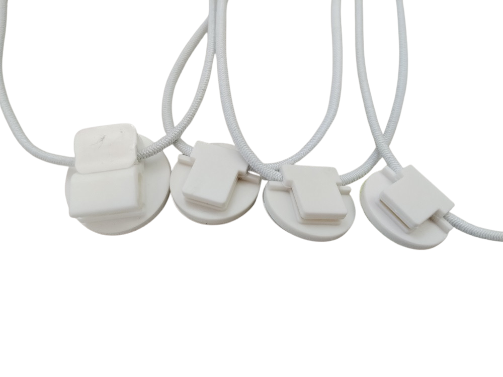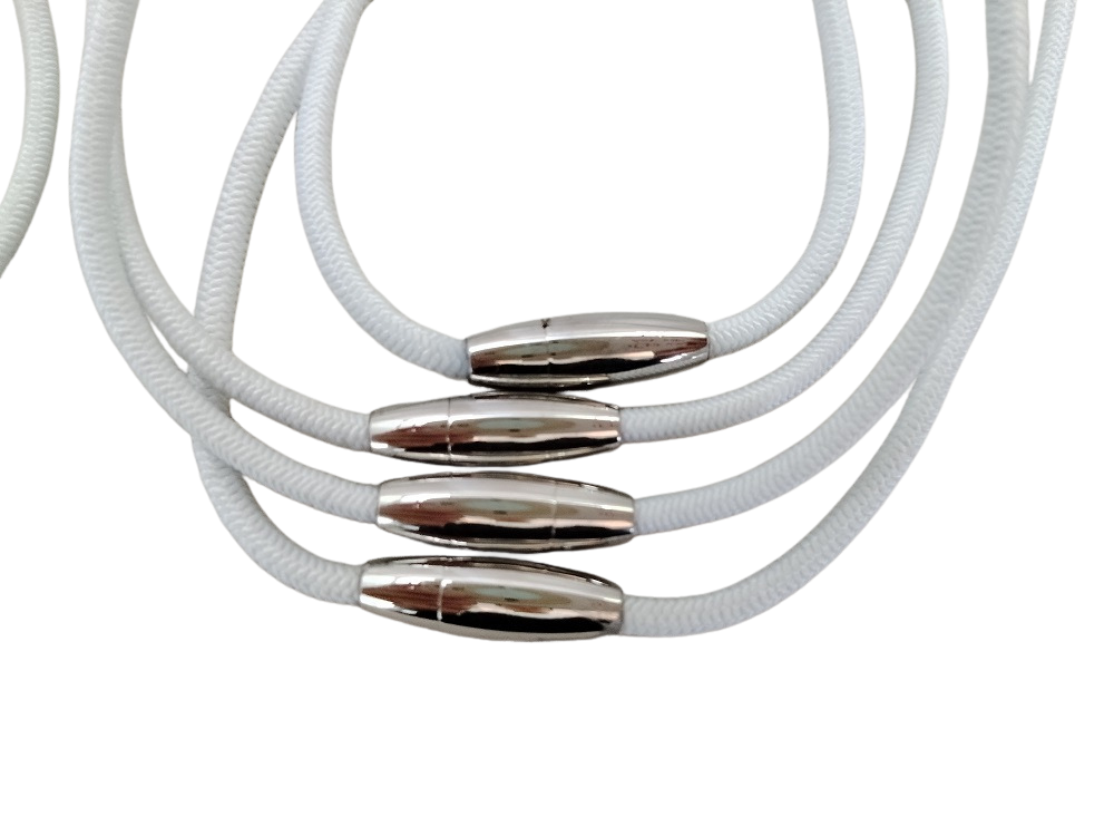 Material: Elastische Rundkordel (Weiß, Schwarz oder Sonderfarben).