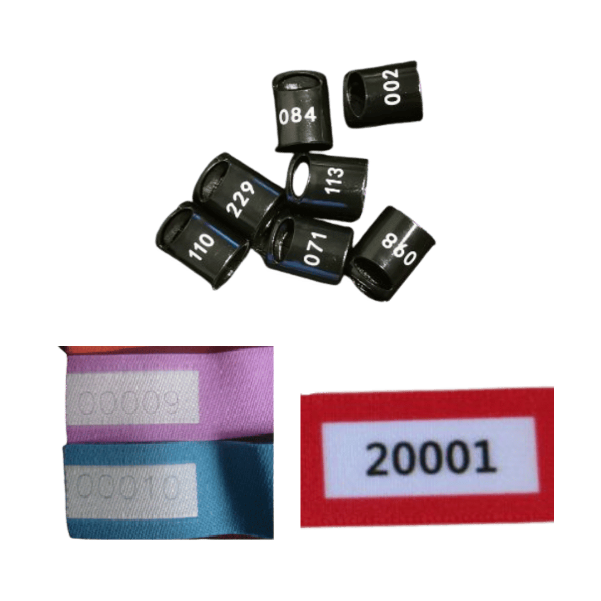 Optionen für die fortlaufende Nummerierung: Sie haben die Wahl zwischen aufgedruckten Nummern auf der Armbandoberfläche oder einer Lasergravur auf dem Kunststoff-/Metallverschluss.