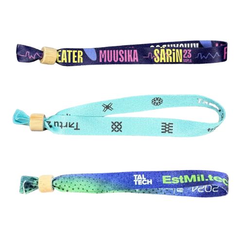 Faites un choix durable pour votre prochain événement. Nos bracelets en tissu avec fermoirs sécurisés en bambou témoignent d'un engagement visible en faveur d'une démarche éco-responsable, sans compromis sur la sécurité ni sur l'image de marque.