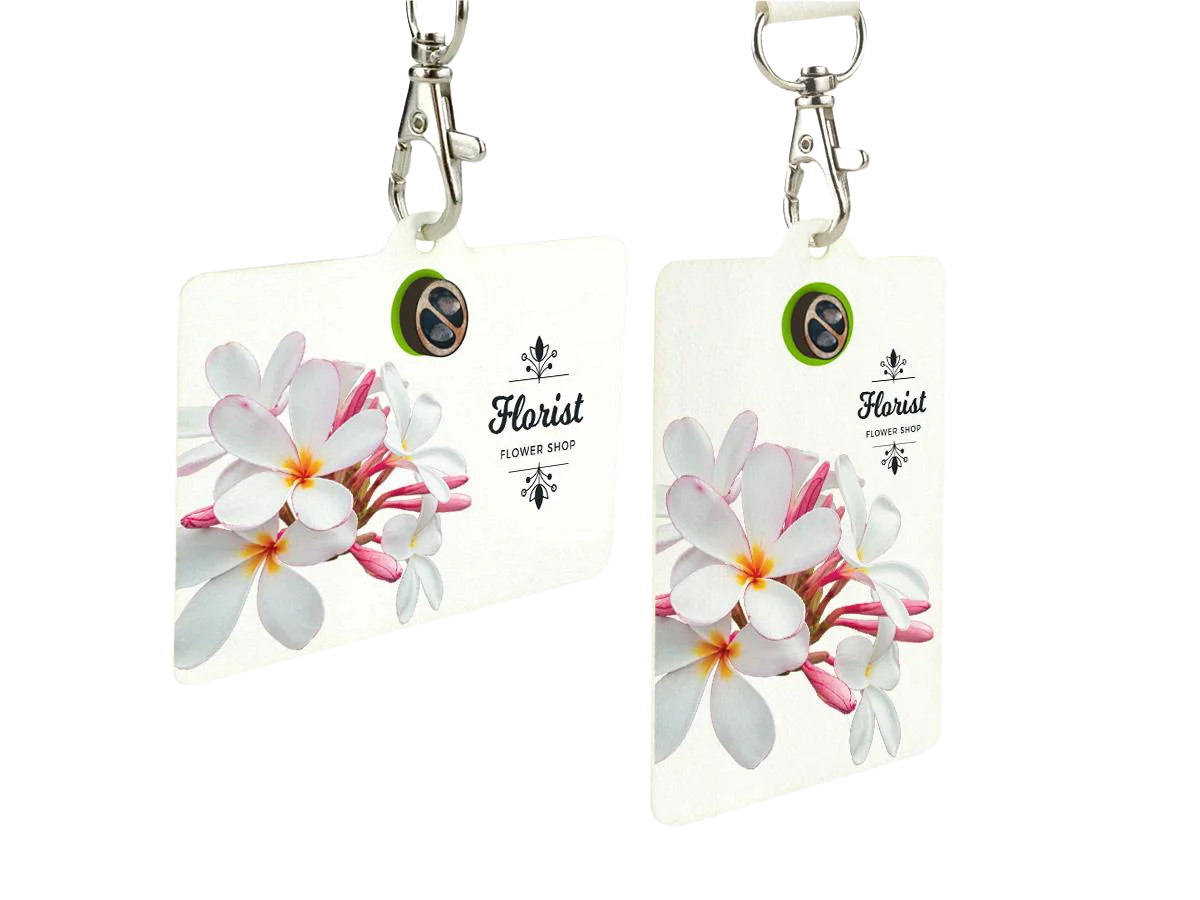 Pārveidojiet sava pasākuma akreditāciju par zaļo paziņojumu ar mūsu palīdzību Stādāmas personas apliecības ar liepu sēklām. Atšķirībā no standarta plastmasas vai papīra nozīmītēm, šīm inovatīvajām kartītēm ir unikāls ekoloģisks elements: priekšpusē ir piestiprināts neliels, bioloģiski noārdāms MDF konteiners, kurā atrodas īsta liepa (Tilija) sēklas.