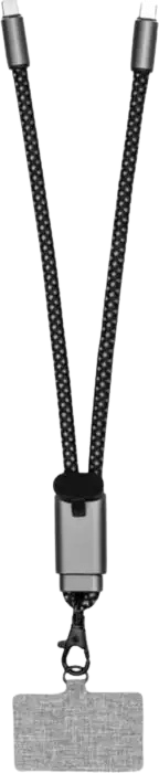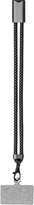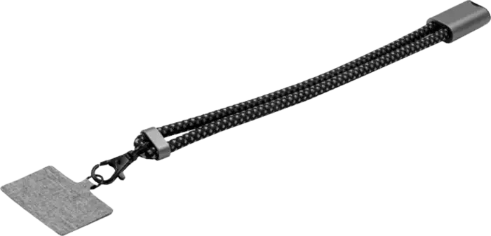 The core of this product is a high-performance, 60W USB Type-C to Type-C cable, supporting both fast charging and high-speed data transfer. The braided cable is manufactured from recycled PET (rPET), appealing to eco-conscious clients and partners. Its secondary function is a robust phone strap, compatible with most phone cases. The strap is lightweight, adjustable, and impressively durable, tested to hold up to 8 kg.