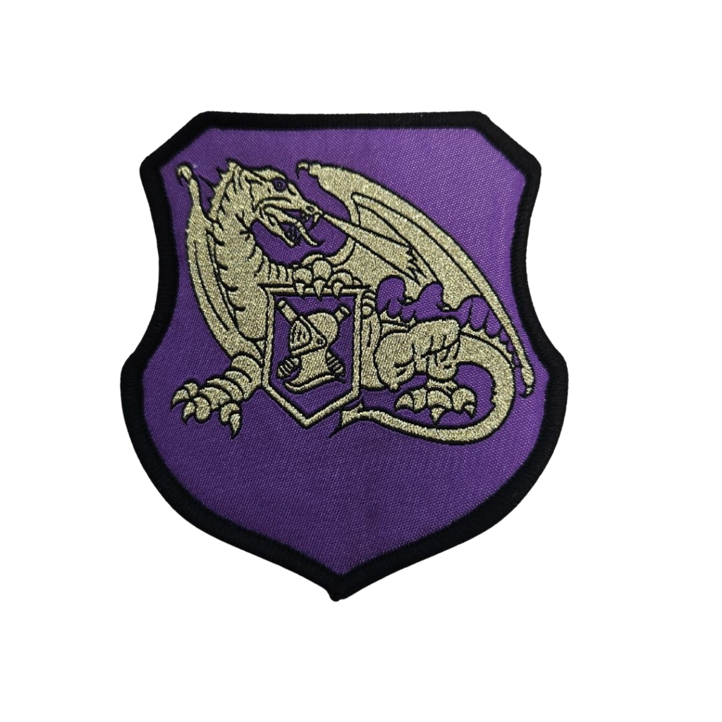 A prime example of our craftsmanship is the emblem created for the Logistics Battalion Reservists. This 80×90 mm patch features a majestic golden dragon embroidered on a deep purple background. We used high-quality metallic gold thread to highlight the intricate details of the dragon, symbolizing power and excellence.