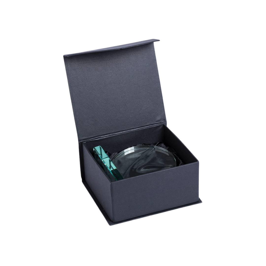 Crafted from thick, high-quality glass, this trophy features a timeless circular plaque design set upon a stable square base. The 400-gram weight gives it a substantial, high-value feel perfect for display. It is specifically engineered for laser printing (engraving), allowing for sharp, precise customization of your logo, text, and award details. Each trophy is presented in its own individual protective case, ensuring it arrives safely and is ready for presentation.