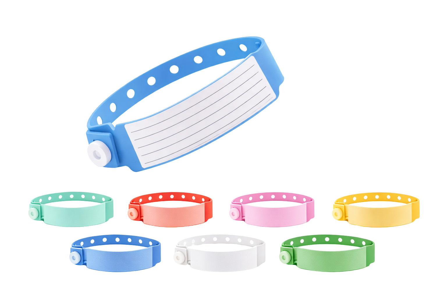 Non-Transferable Security: Equipped with a single-use plastic snap closure (clip) that must be cut to be removed, preventing unauthorized transfer between patients.