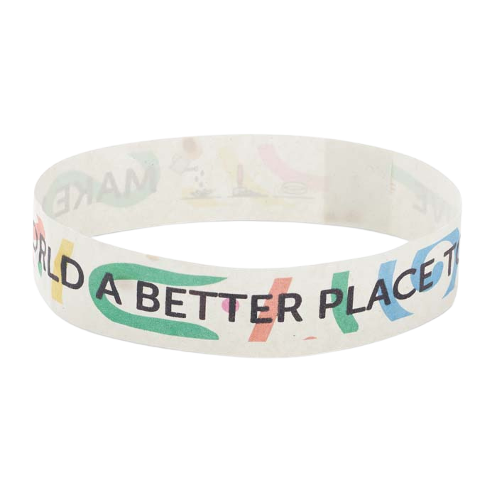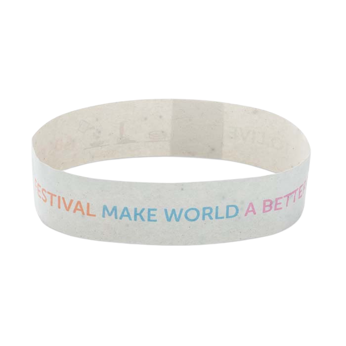 Plantable Technology: Crafted from 80gsm paper embedded with a mix of wildflower seeds. After the event, the wristband can be planted in soil to grow flowers.