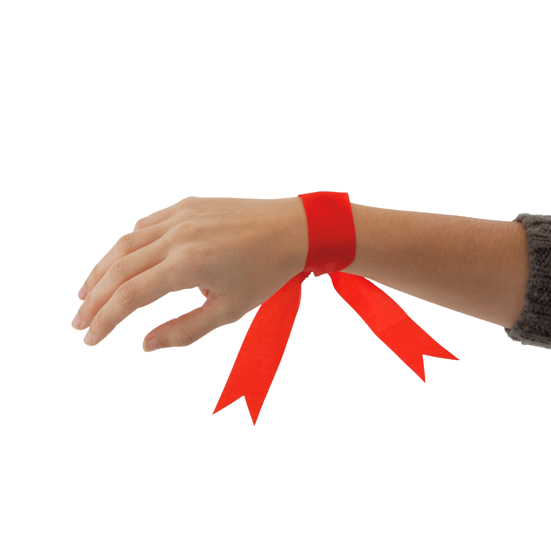 Made from a soft polyester ribbon with a smooth satin finish, these wristbands are designed to be tied on by the user, providing a comfortable, one-size-fits-all solution. The simple tie-on closure makes them perfect for mass distribution at trade shows, conferences, or public awareness drives.