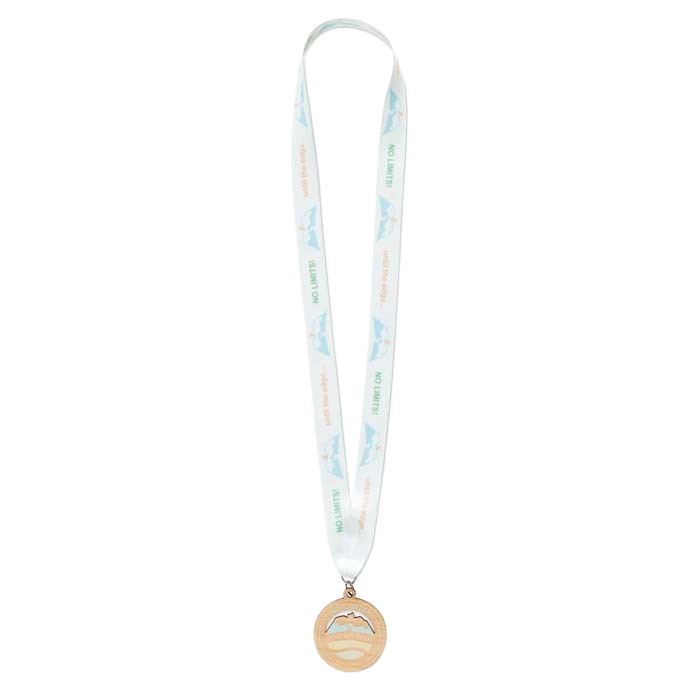 Fitas de pescoço Premium e Sustentáveis Para completar a premiação, cada medalha inclui uma fita premium de 80 cm, impressa em cores em ambos os lados. Você pode escolher entre uma fita de poliéster padrão com costura em laçada ou uma fita de poliéster com costura em laçada. fita rPET ecológica feito de materiais reciclados, aumentando ainda mais as credenciais sustentáveis do seu evento.